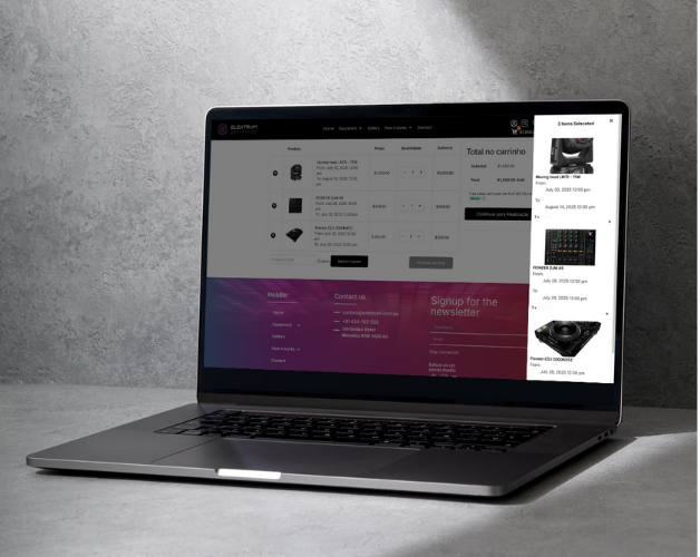 After adding all equipment to the cart, proceed to finalize the rental.